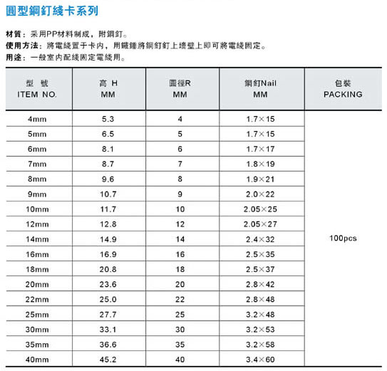 • 產品類別: 產品展示 鋼釘線卡 新品展示